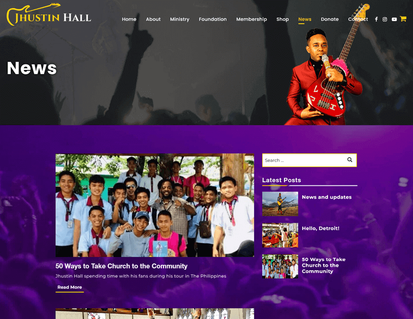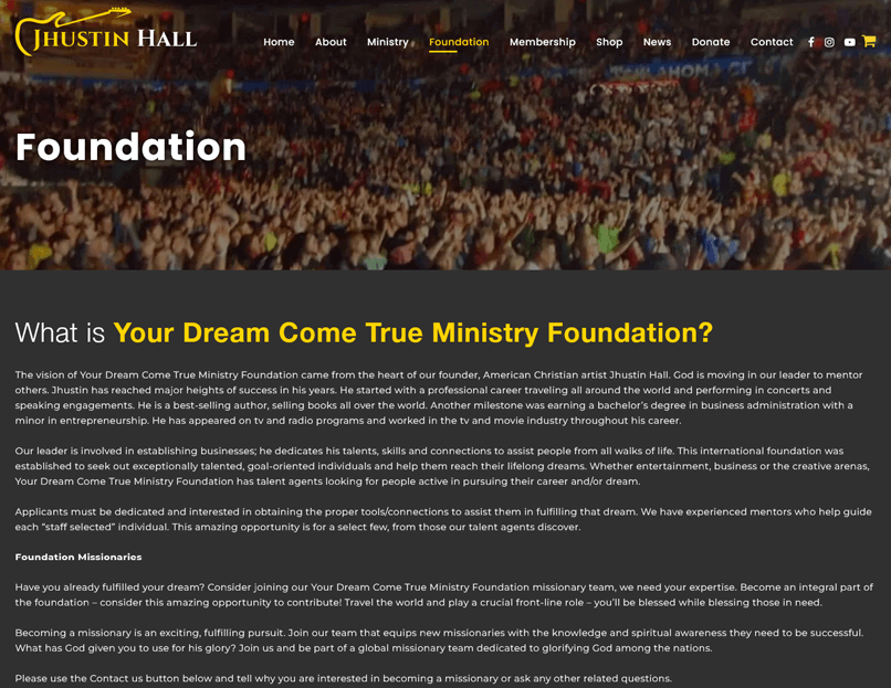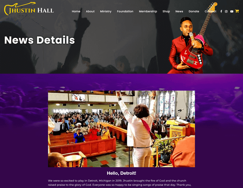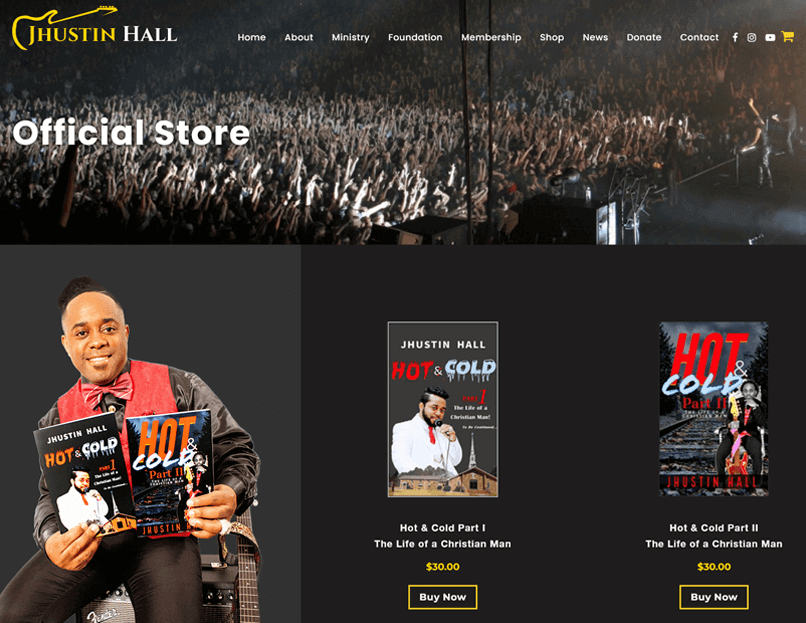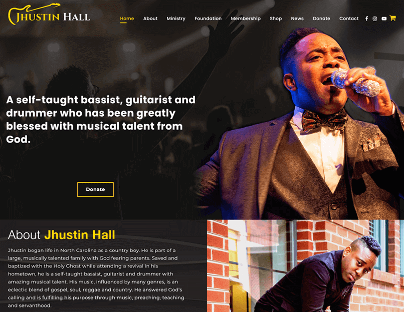 Jhustin needed a new website that could engage better with his listeners. He wanted to have the ability for their fans to be able to hear his new music samples online. He also wanted to be able to sell his books and music through his website. He also needed separate pages to create membership accounts and donate to his foundation and ministry.
